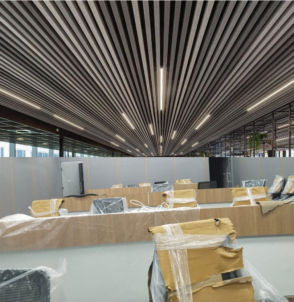 We are offering Baffel metal false celling for our client, which is widely us in celling with baffle for buidling sectors include corporate offices, transport (Airport, Metro, Bus stations), public sectors, retall, healthcare, hospitality and Education sector.